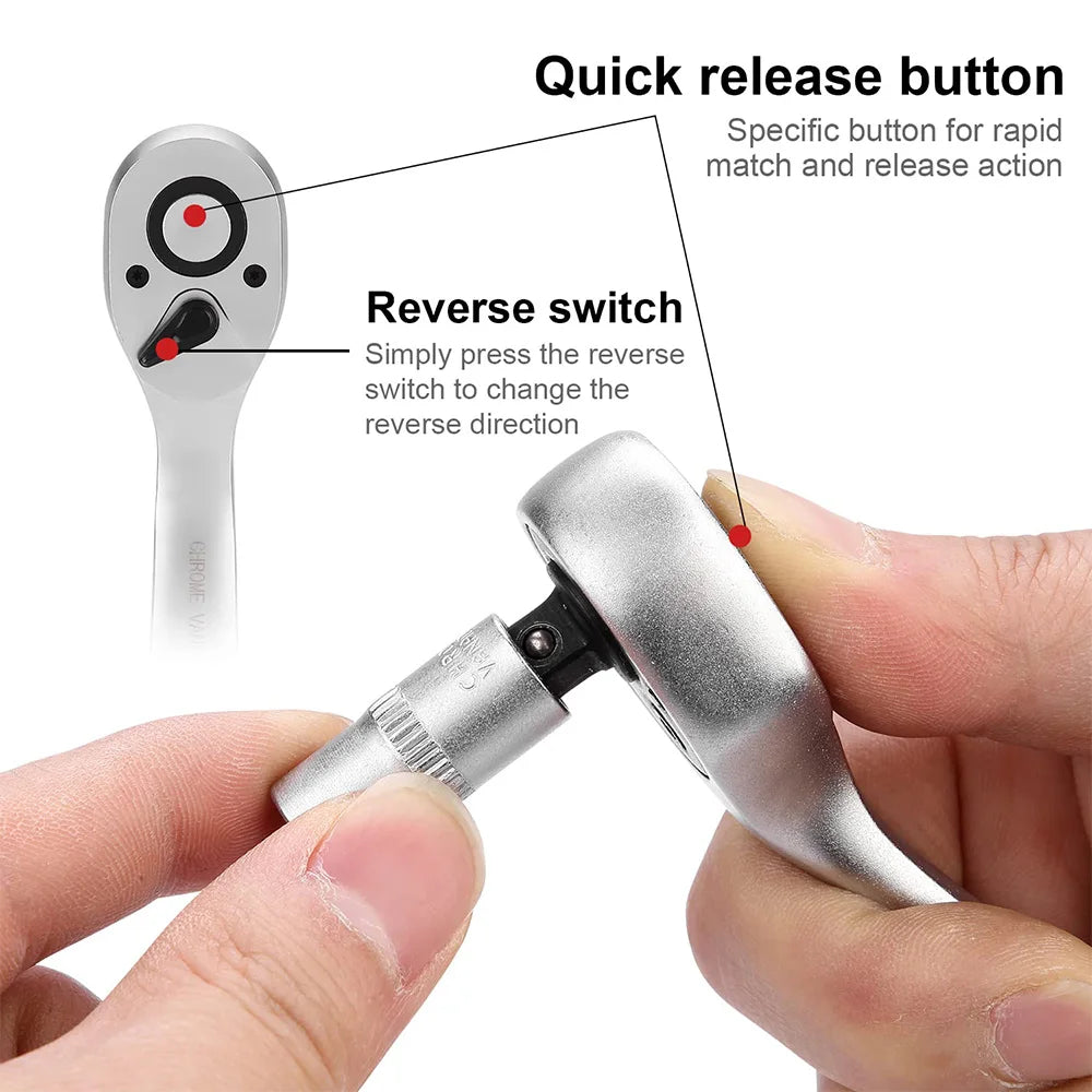 Comprend une large gamme de douilles, cliquets, clés, tournevis et embouts pour s’adapter à tous types de travaux : automobile, mécanique, plomberie ou bricolage domestique.